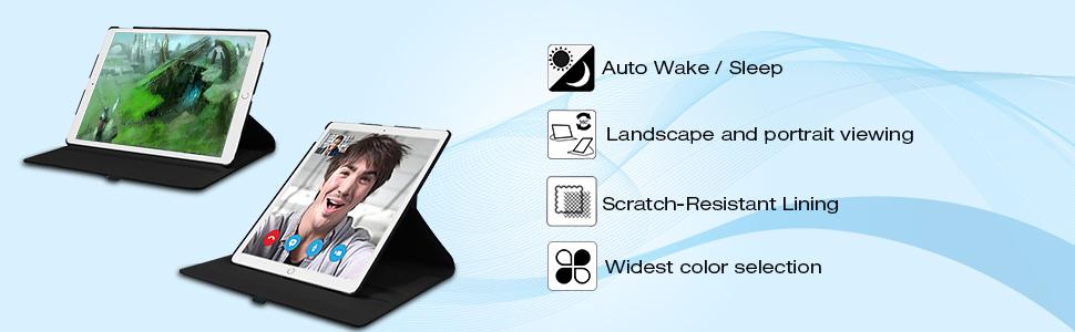 - Automatically wakes or puts your device to sleep. Rotating structure in the case in the case for flexible horizontal and vertical viewing.